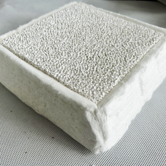 ● The ceramic foam filter plate is surrounded by a sealing ceramic fiber liner, which facilitates the seal of the filter plate in the filter box to ensure that there is no metal liquid sideflow.
